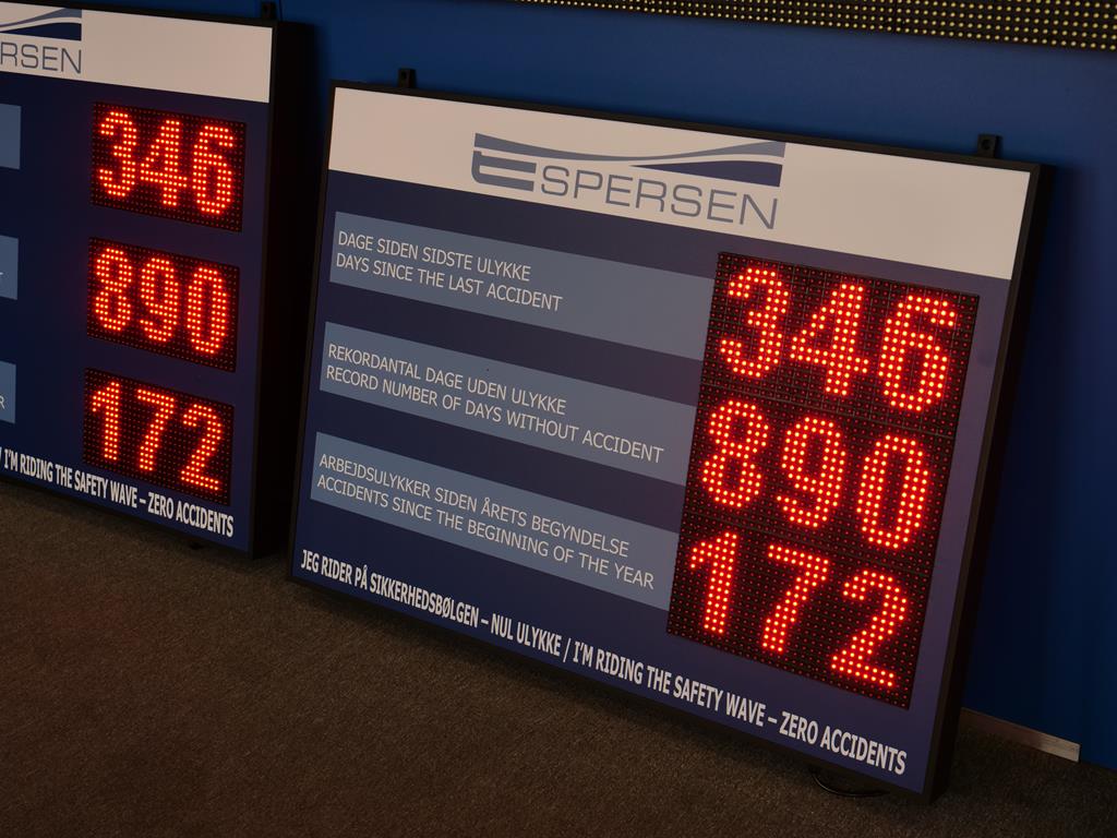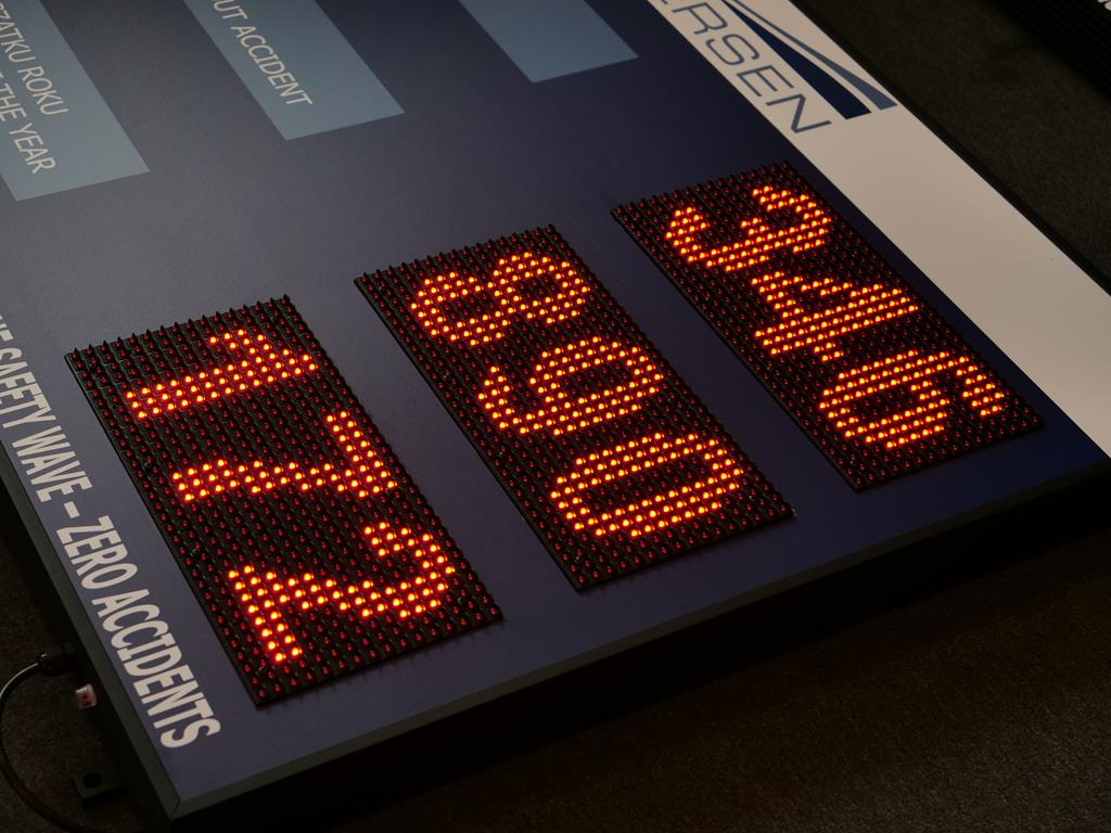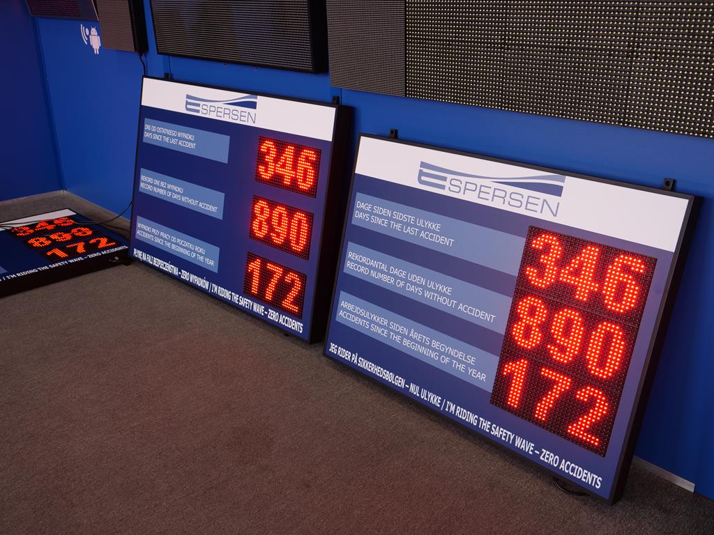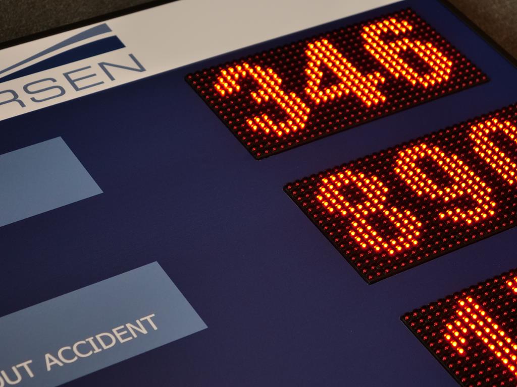 Nowoczesna tablica BHP LED przeznaczona do czytelnego i bieżącego prezentowania informacji dotyczących bezpieczeństwa pracy. Urządzenie wyposażone jest w 3 niezależne pola LED, umożliwiające wyświetlanie danych o wypadkach, zdarzeniach oraz kluczowych komunikatach BHP.