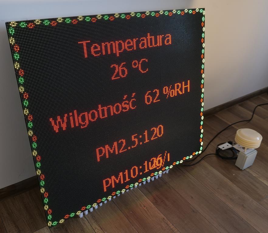 Tablica może służyć do wyświetlania komunikatów ostrzegawczych i alertów, np. przy wysokim poziomie zanieczyszczeń.